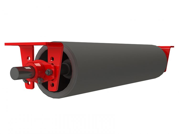 The second stage focuses on the roller bearings, which allows the rotational movement of the tracker. Steering of the roller is activated by additional mass and friction to one side of the roller, which drags the roller drum forward and steers the belt back to centre. Results in the field have shown there is no downside to this design compared with a fixed axis design, and it has been found that the rubber coupling is a more reliable unit, due to its simplicity and given it is not affected by contamination like a conventional greased bearing.
